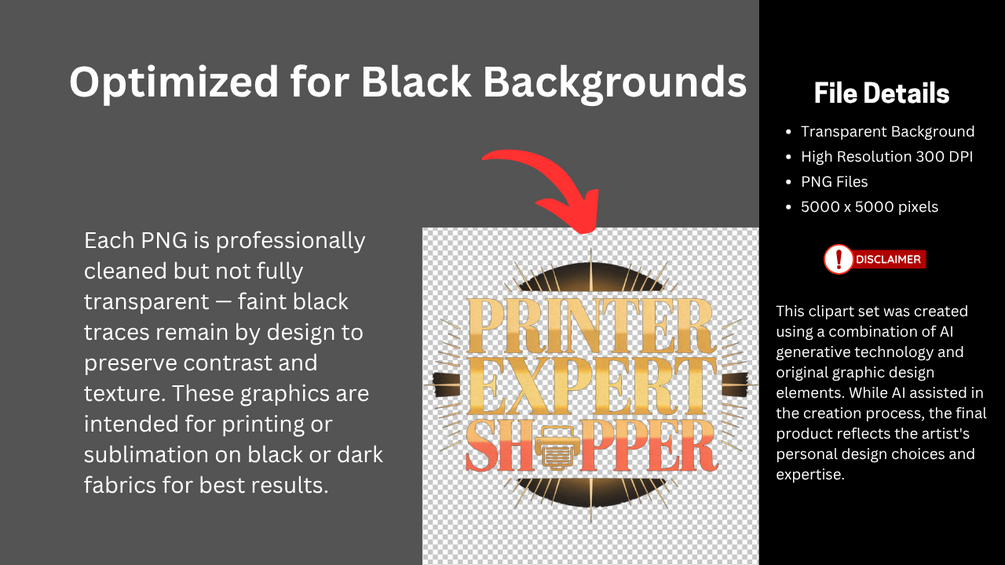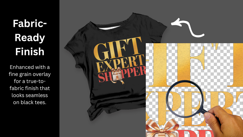 Each PNG features a fine-grain overlay to mimic real fabric texture — no harsh glare, no ragged edges — so every design lands flawlessly on dark apparel and merch.