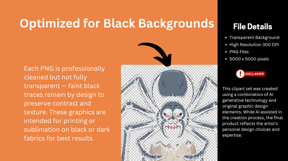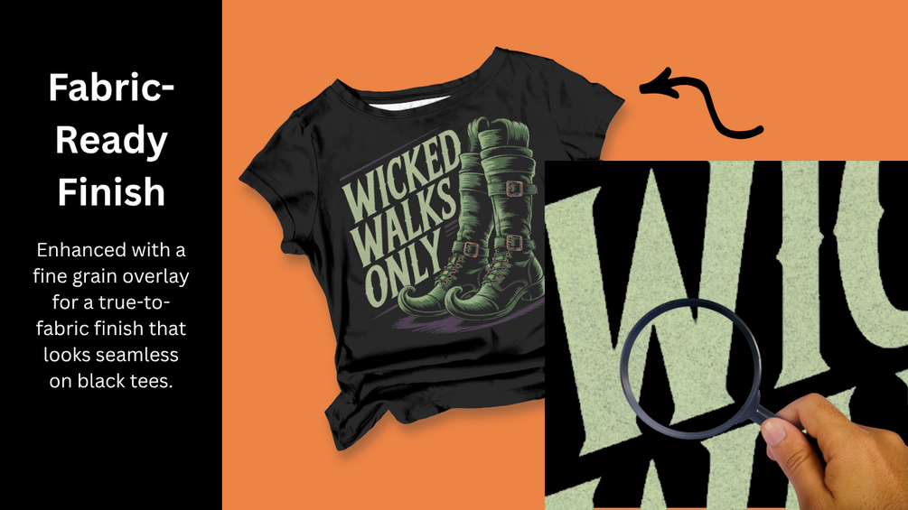 Each PNG includes a fine grain texture overlay, added in post-production to simulate the look of real fabric. The result? Smooth, natural depth that blends beautifully on black tees or dark surfaces — no flat shine, no harsh edges, just a professionally finished look.